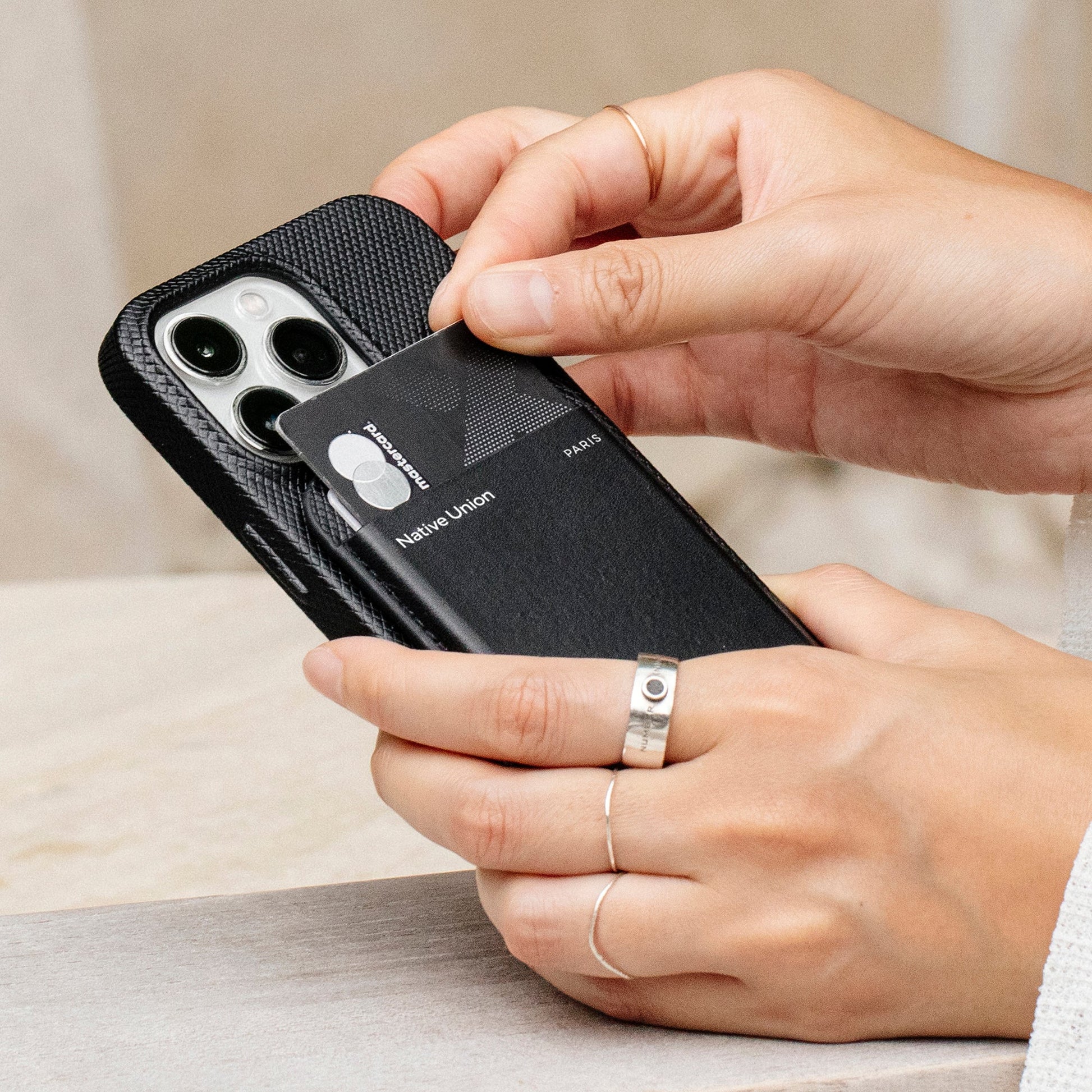 Your phone and wallet, all in one. Keep three of your most-used cards always in reach with strong built-in magnets for secure attachement to your iPhone. Durably crafted with Yatay™ by Coronet and finished in a refined textured contrast, snap on everyday ease in eco-friendly elegance.